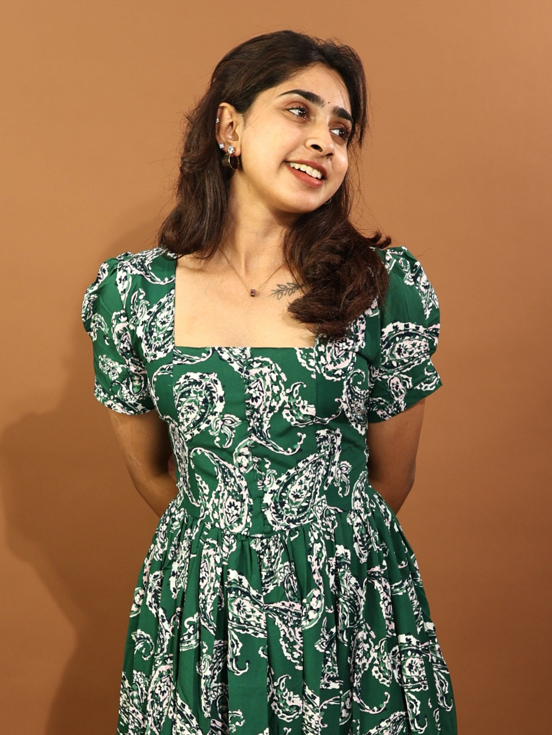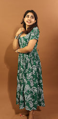 Elevate your wardrobe with our Elegant Green Paisley Maxi Dress, a perfect blend of timeless charm and modern comfort. Crafted from premium breathable fabric, this dress features a captivating green base adorned with intricate paisley patterns, exuding a graceful and chic vibe.